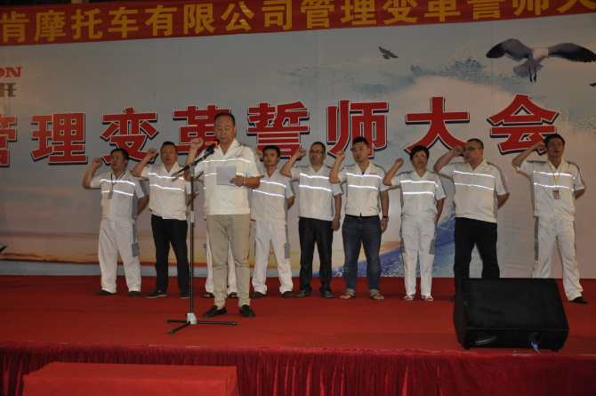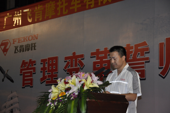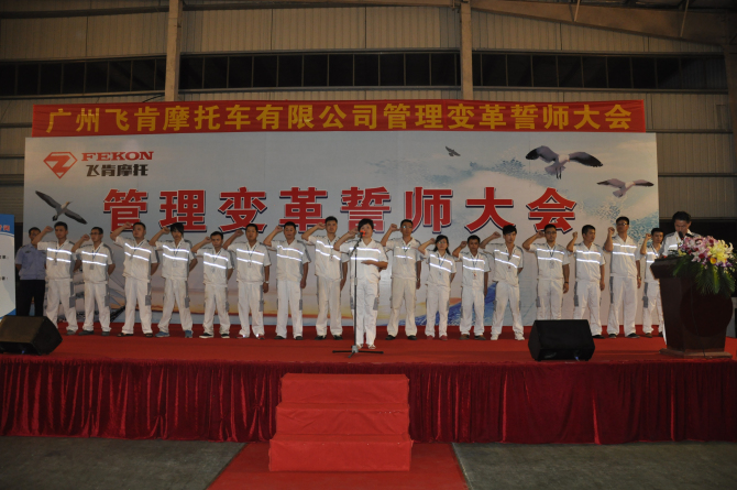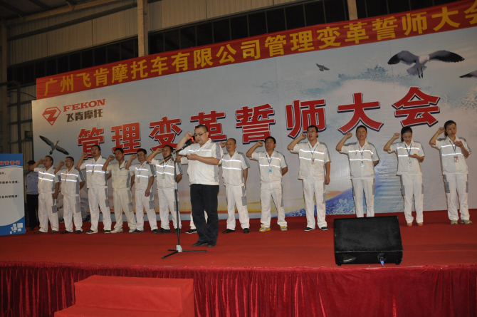 攻坚克难,义无反顾,超越过去,再创辉煌。此次广州飞肯摩托车有限公司企业管理变革誓师大会,即是一次企业管理变革正式进入变革期的启动大会,也是一次全体员工迎接挑战、变决心的战前宣誓,更是一次通往胜利的祷告宣言。通过这次企业管理变革,企业将会从规范管理、产品质量、市场把控等方面得到较大的提升,我们有理由相信,广州飞肯摩托车有限公司的未来从此将会再次走向辉煌。