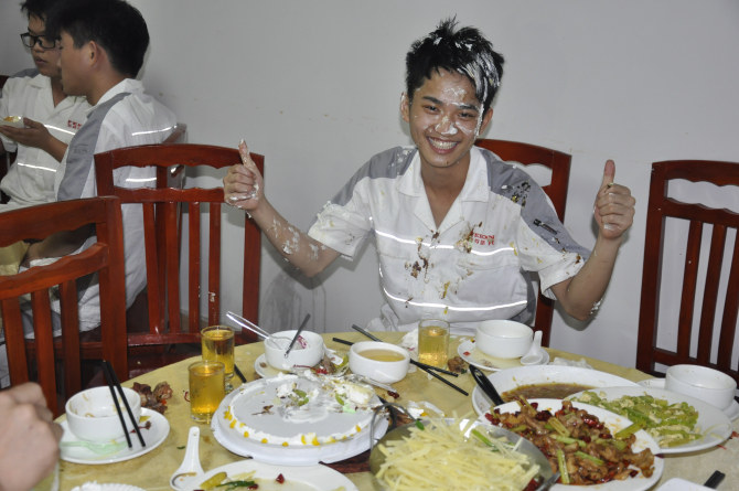 五月二十八日晚上,在公司董事长大力支持及人力资源部积极热情的筹备下,飞肯几十名员工的庆生Party就在大众饭店的雅间里拉开帷幕,首先我给每一位寿星发了生日贺卡,精致的贺卡带去了公司领导对同事们真诚的祝福;带去了公司对他们在飞肯智慧和汗水的肯定;也代表了公司对他们的美好祝愿。公司也提前联系饭店准备了三大桌丰富可口的饭菜,Party一开始人力资源部陈主管就用无与伦比的口才、与生俱来的领导和号召能力把宴会氛围活跃起来了,同事们之间的陌生和距离一瞬间消除了,于是大家互相举杯庆祝。席间人力资源部邓总于百忙之中抽空来祝大家生日快乐,并真诚的祝愿各位寿星生日快乐、马上开心、马上心想事成。人气甚高的邓总祝贺词一说完马上迎来了寿星们的轮流敬酒,从稳重成熟的大哥大到年轻可爱的小兄弟,他们的酒中充满了对邓总的支持、信任和感激。当然,我也没闲着,马上用敏捷的镜头捕捉了各种温馨、充满感情的画面。最后我们还摆上了专程为寿星们定做的生日蛋糕,当大灯熄灭烛光闪闪的时候,寿星们的心愿便在Happy Birthday生日歌声中许下。