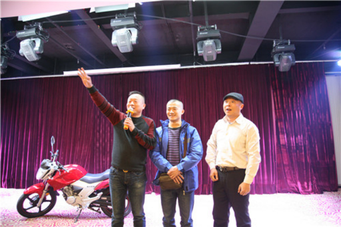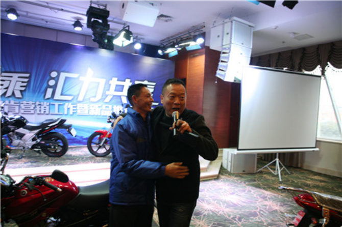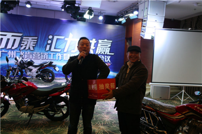 会上,郑总和陈总各拿出一辆摩托车用抽奖和竞拍的方式奖励给经销商,一度让会议的气氛达到高潮。最后,经销商踊跃下单,据统计,现场下单超过1000辆,这为2014年飞肯在四川的飞越奠定了基础。
