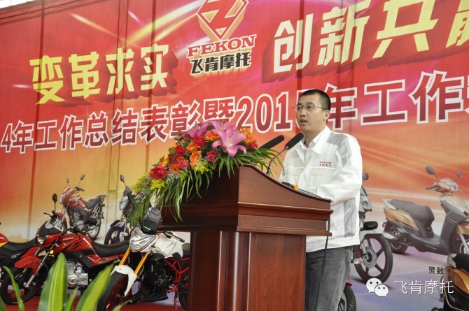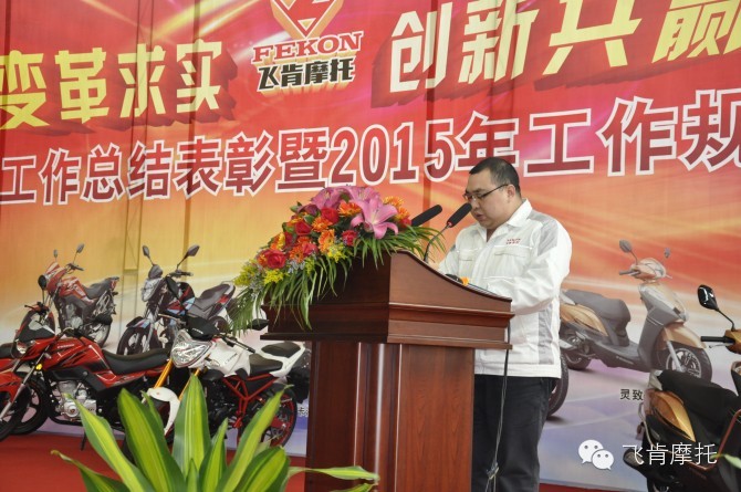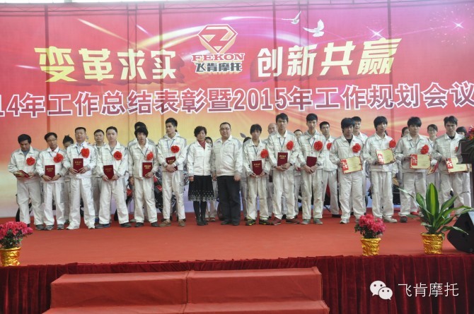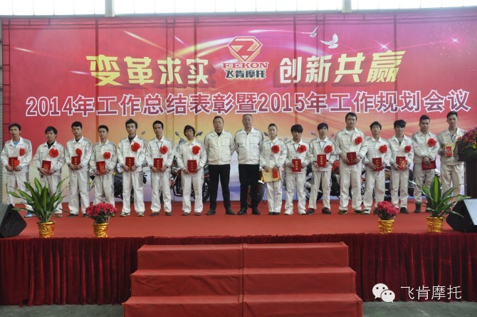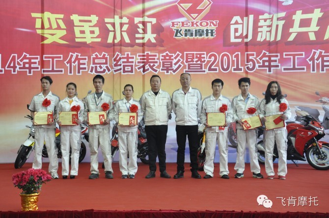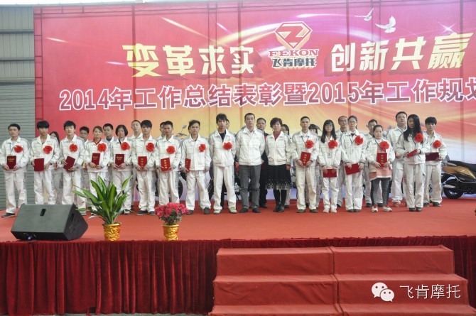 2015年1月31日,飞肯摩托2014年年终盛宴敲响。今年的年终不设限,只要你够优秀,年终会就是你的舞台;2015年的每一天也不设限,只要你肯拼、愿意学习,“好”、“很好”、“非常好”的平台任你选择;只要你共享你的才智、成果,“好”、“很好”、“非常好”的收获任你选择。
