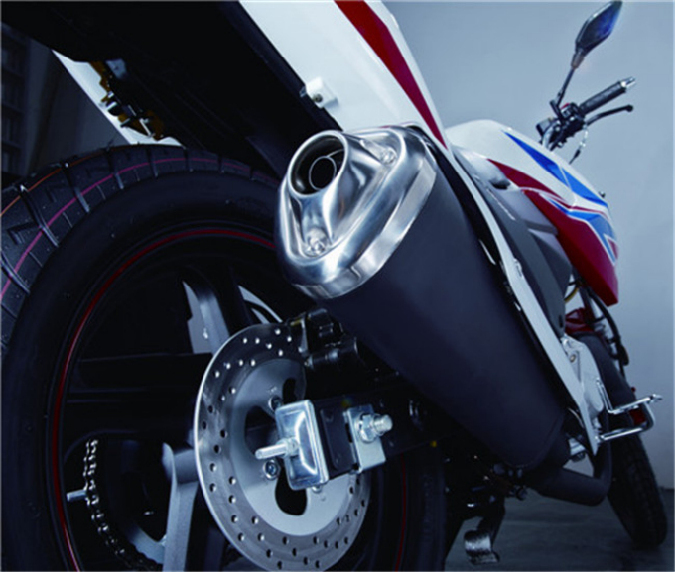 配置上是飞影最大的亮点,前后碟刹、液晶仪表、正新宽幅真空胎(后胎)、后中置减震、铝合金扶手、LED尾灯及转向灯、豪华油箱、高品质消音器,均采用了合资企业的配套体系,十分厚道。