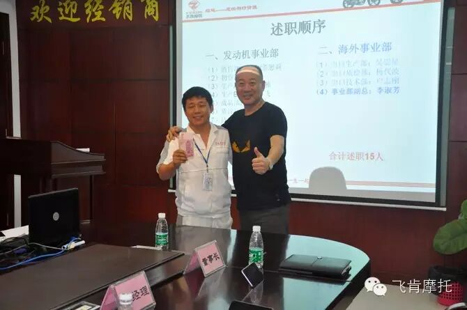 8月7日至8日,飞肯摩托2015年度核心管理干部上半年总结暨下半年工作规划述职大会圆满落幕。会上,我们的所有管理层总结过去的不足,将经验积累和沉淀,力争在下半年为用户提供业内最优质的服务和最好的摩托车,实现飞肯的再次飞跃。