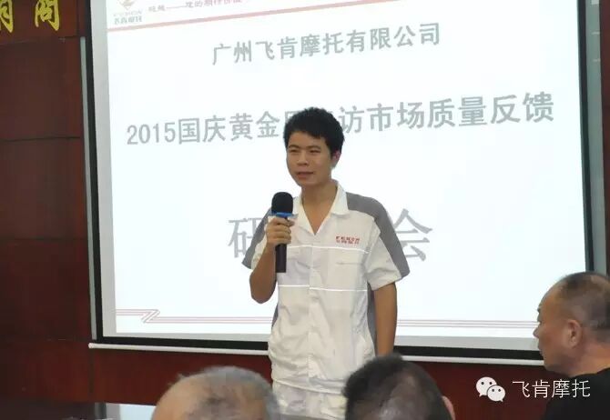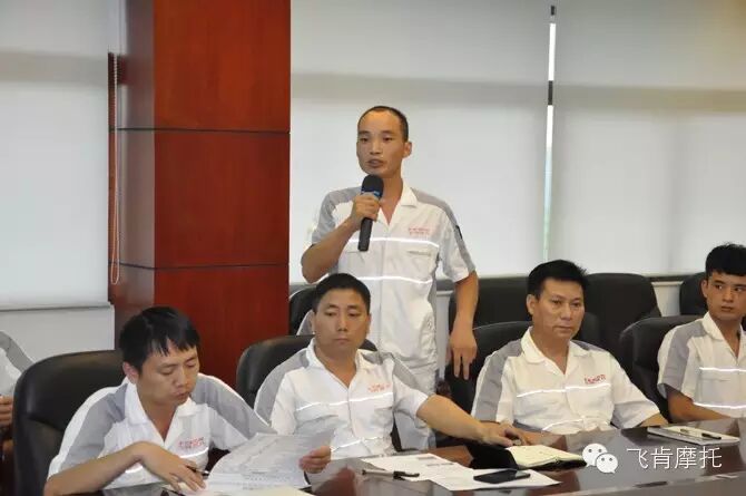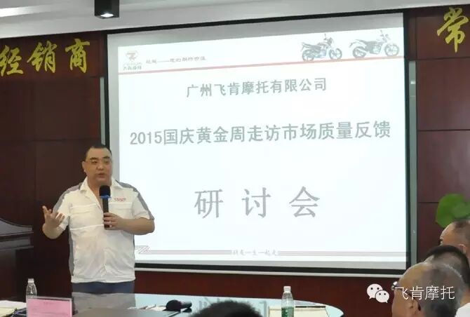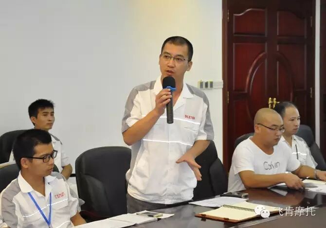 10月6日,飞肯摩托质量研讨会隆重召开,公司董事长郑滨、总经理郑洪、生产、技术、发动机、市场、售后、成品等相关责任部门骨干参与会议。