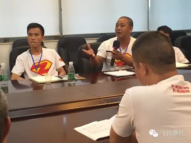 在2015年上半年行业普遍不景气的情况下,飞肯摩托逆势上扬,引发行业的广泛关注,纷纷打探飞肯的秘诀。据飞肯营销总监郑波介绍,通过对经销商进行培训,互相交流学习,为以后的运营提供智慧支持。