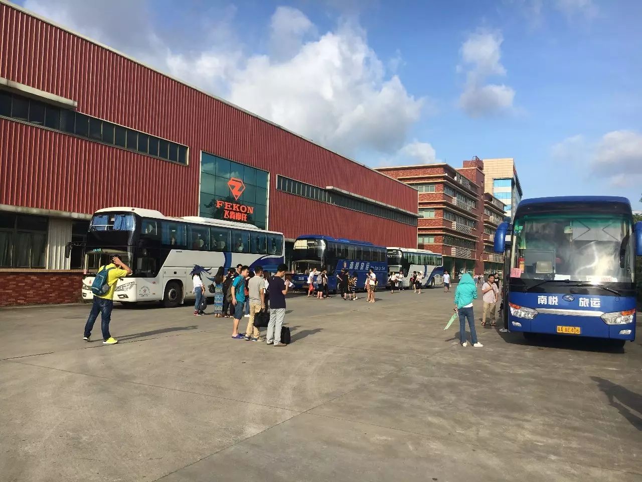 七辆大巴整装待发,出游的人儿换上漂亮的衣服,抑制不住内心的小确幸了
