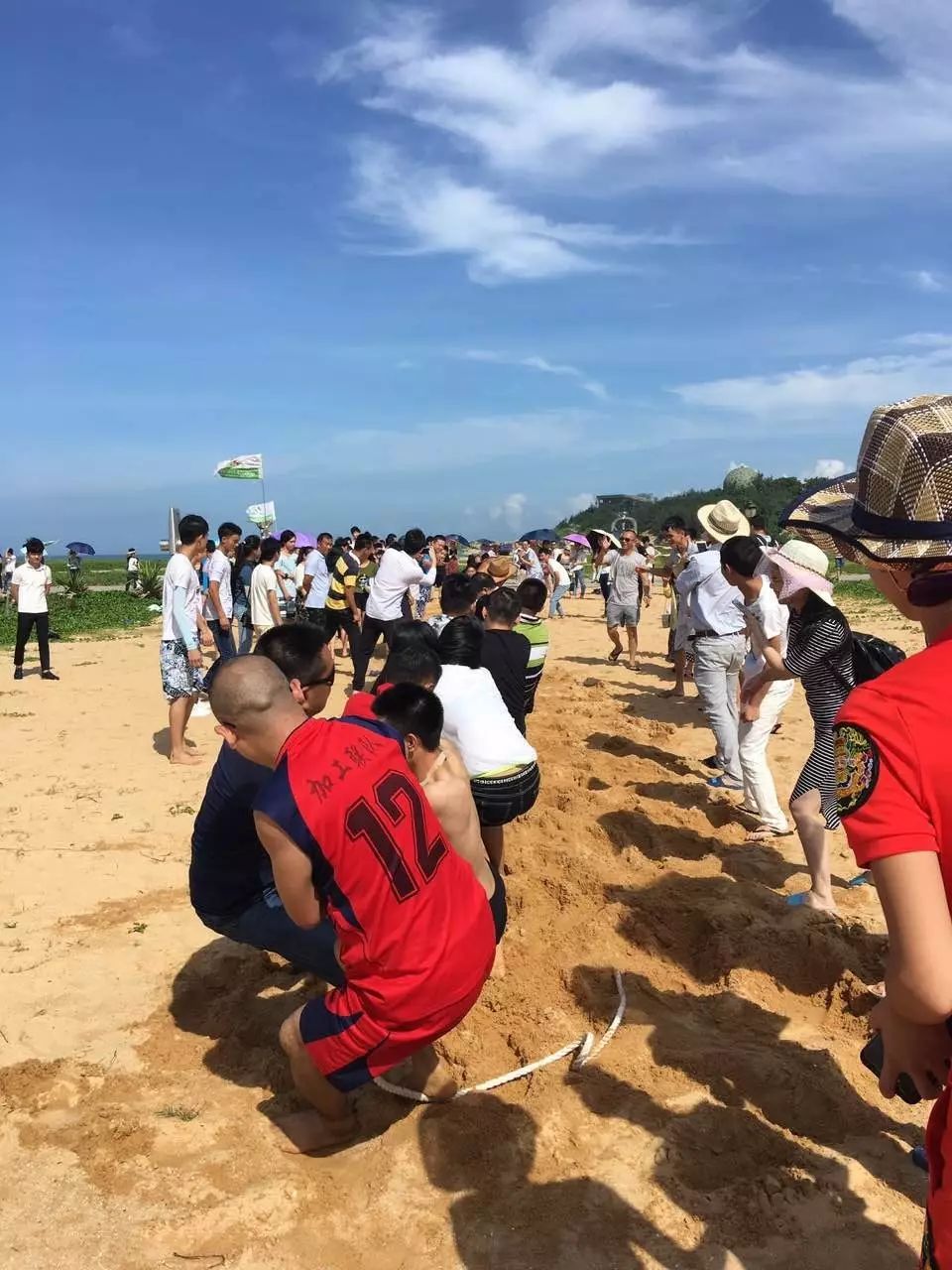 工作团结一致,相互协调,拔河也不例外。(阳光沙滩,一场团队的较量)