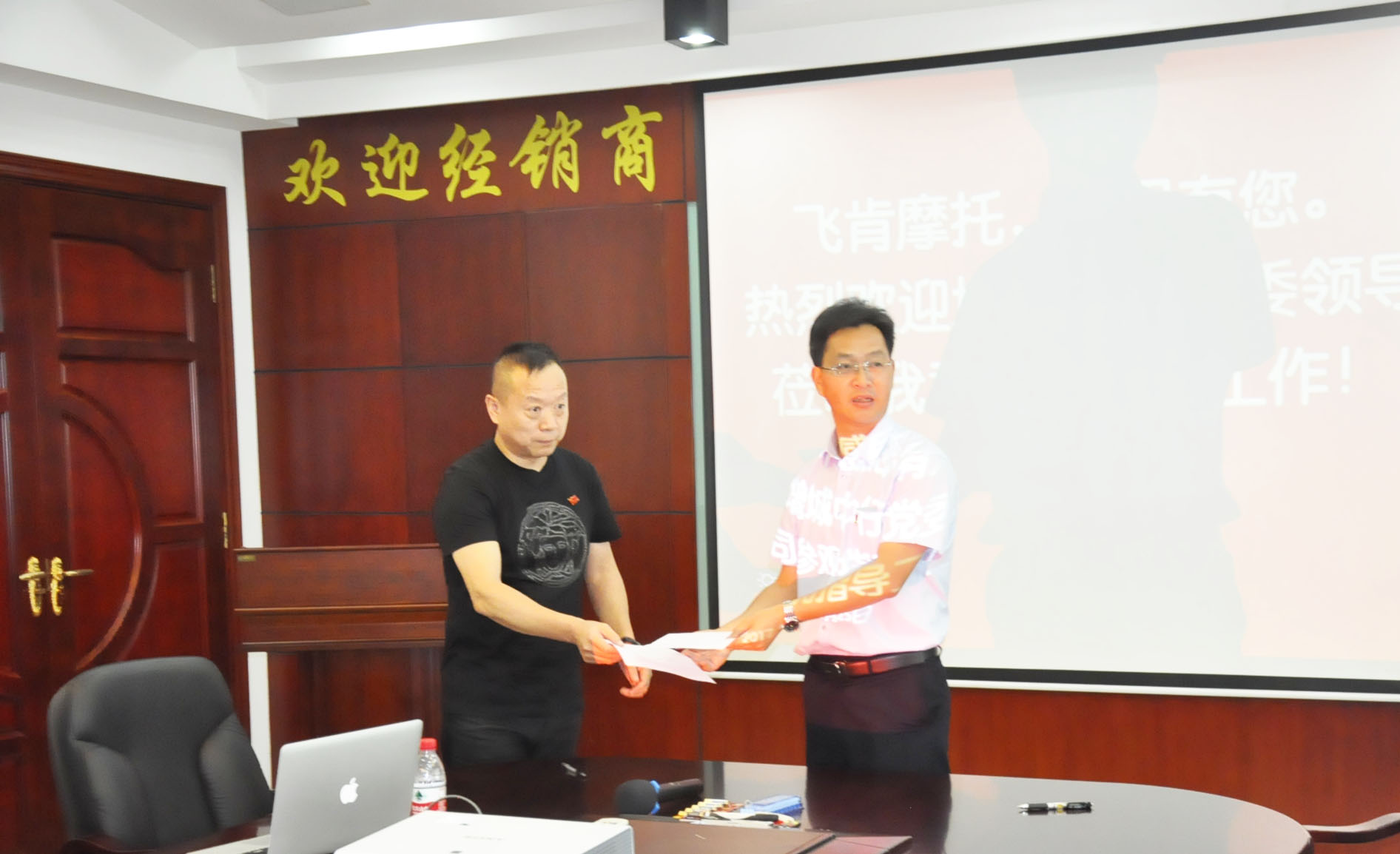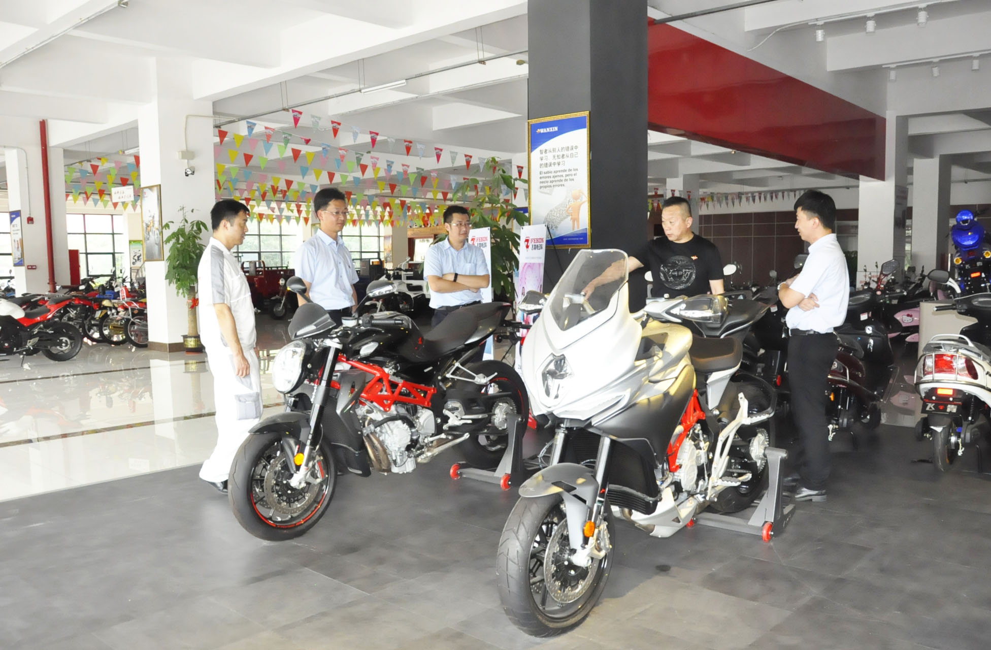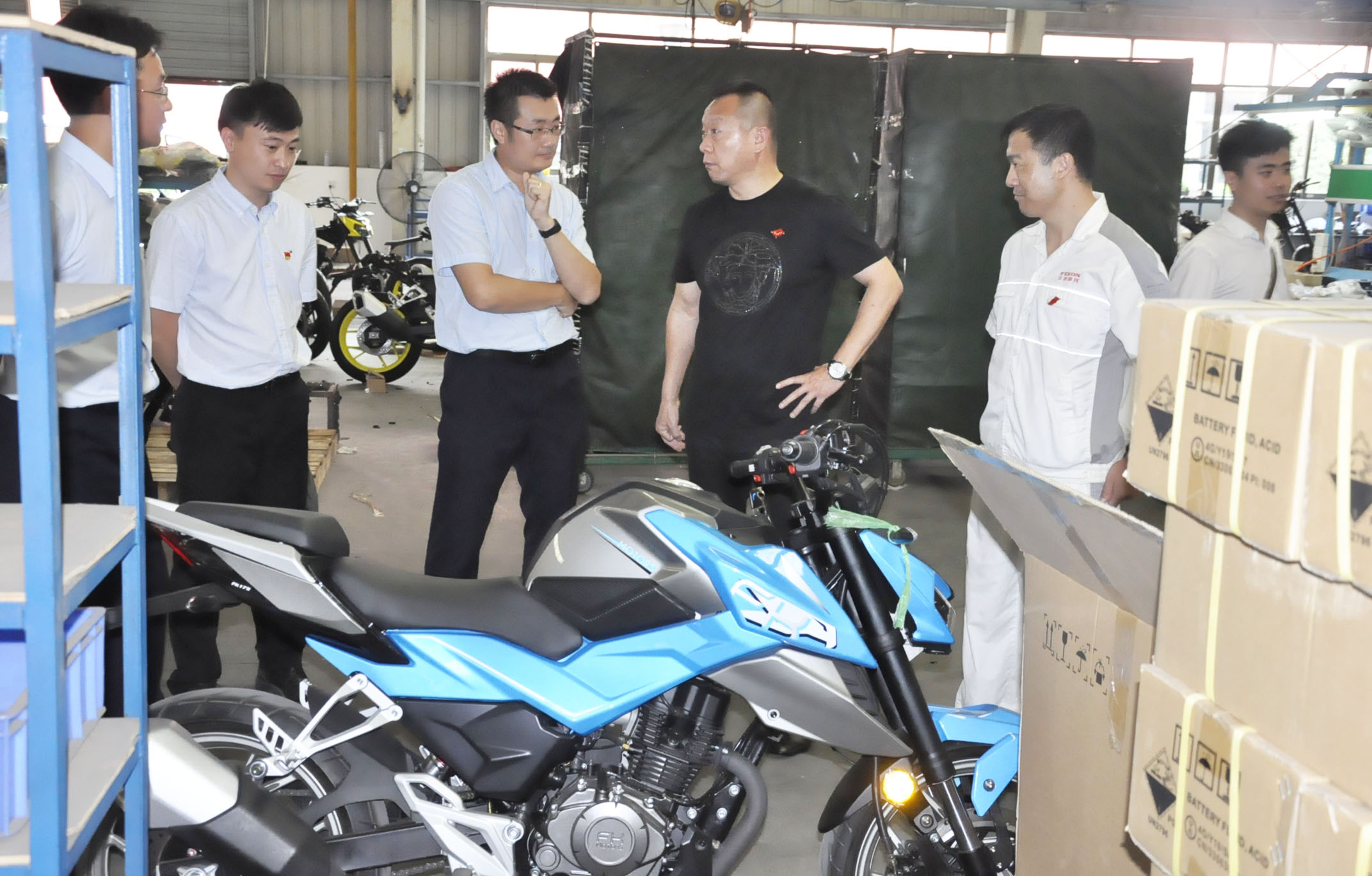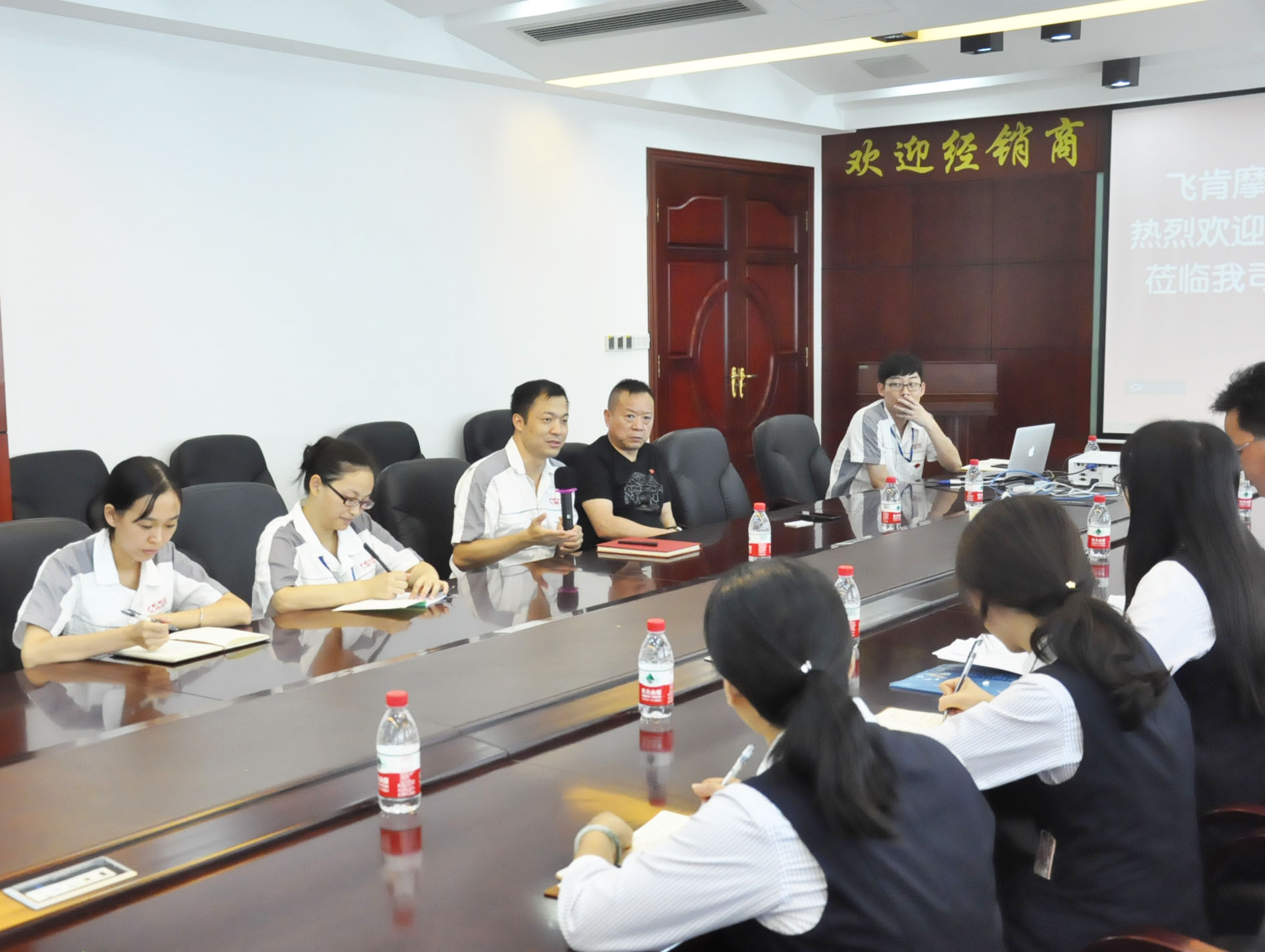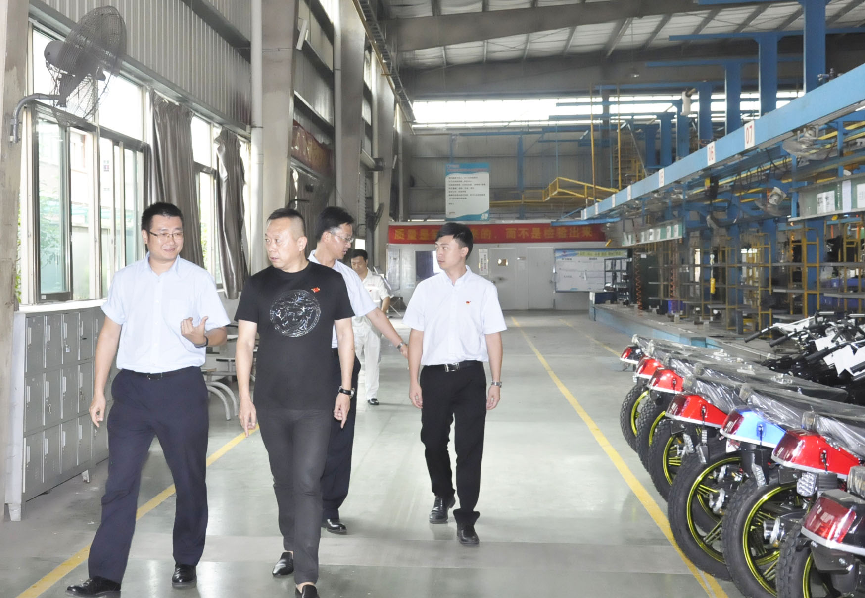 飞肯摩托总经理兼党支部书记郑洪同志、财务部经理兼发改委主任邓赞长同志及其他党员同志,同增城中行党委组织领导,首先在会议室进行了深入交流。