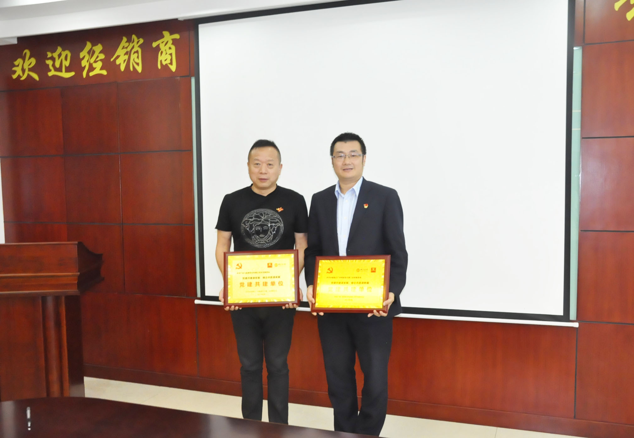 双方签订了党建交流工作协议书、颁发牌匾,达成友好协议。