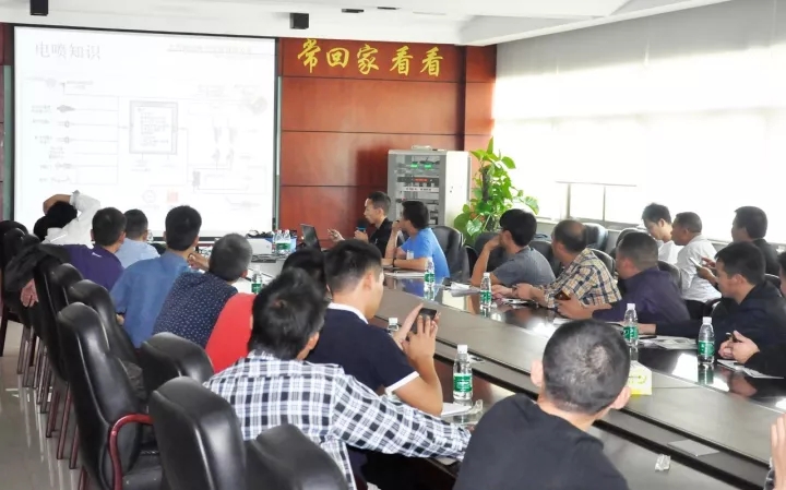 分享会上,技术工程师主要介绍了电喷知识;零部件的特性、功能原理、安装位置及失效判定;诊断方法及注意事项,故障指示灯及读码分析,排故的流程等。