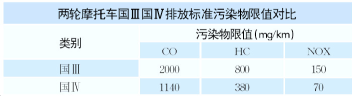 对比目前实施的国Ⅲ排放标准,国Ⅳ标准在CO、HC、NOX的排放限值上均有超过70%的提高。