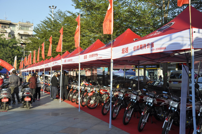 2013年适逢飞肯专卖店成立三周年,为了庆祝这个重要的日子培盛车行在石滩第一城广场举办了为期三天的产品零利润广场促销活动,让新老用户充分感受到培盛车行的真情实意。整场活动下来培盛车行总计卖了125辆车,其中飞肯牌摩托车就有78辆,虽然三天来培盛车行一分钱都没赚到还倒贴了数万元,但培盛车行的全体人员都觉得此次活动非常值,因为大家都深知财散人聚,财聚人散的道理,只要有付出终有收获的一天。