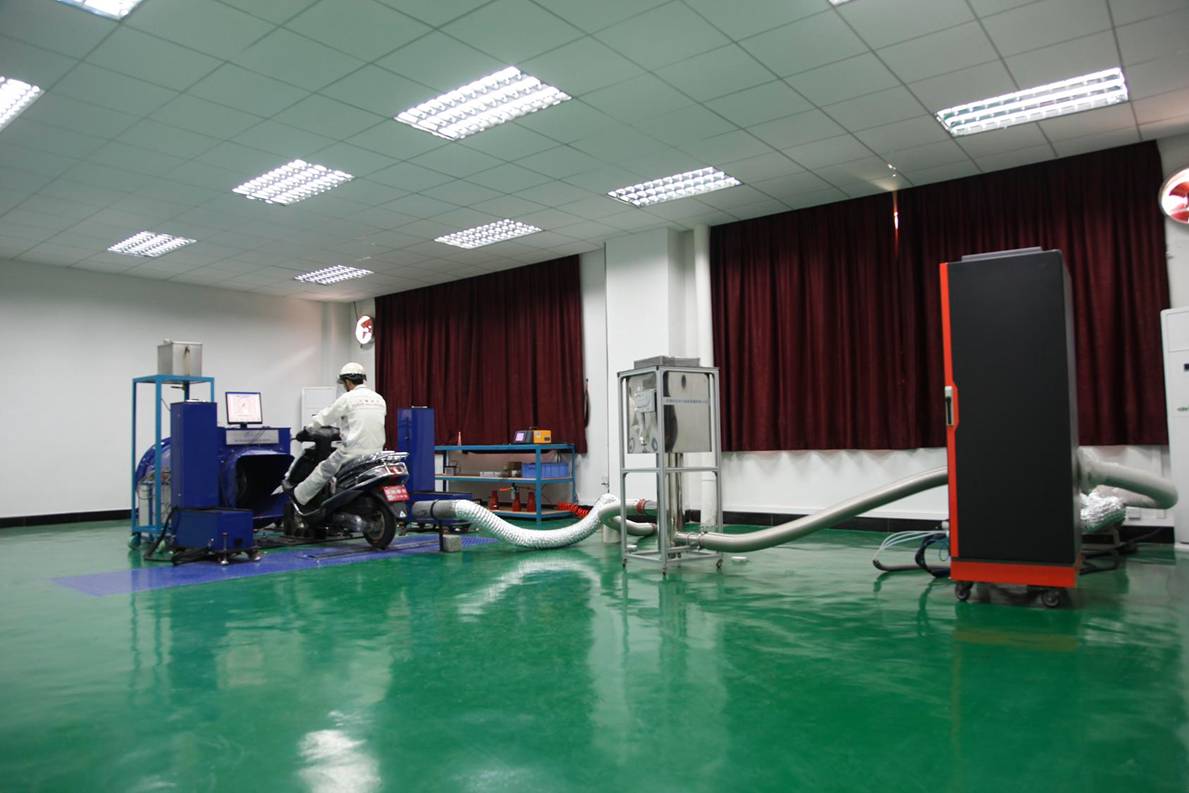 广州飞肯摩托车有限公司检测中心于2010年初开始筹建,2010年9月正式投入使用,主要从事摩托车和轻便摩托车、摩托车发动机和摩托车关键零部件的检测工作。该检测中心实验总面积达4000多平方米,仅设备投资即高达2000多万元,不仅技术力量强, 测试手段先进,而且完全参照国家试验室(CNAS)管理体系进行运作管理,目前正申报并即将通过国家级实验室认证。